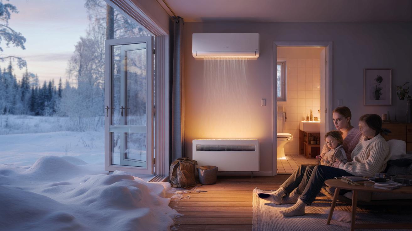 Take a family house in Tampere as an example. Outside, snow piles up to the windowsills and the river steams in the dawn light. Inside, the parents have set their wall unit to 21°C and basically forgotten about it since October. The pump sips electricity, roughly three times more efficiently than a standard electric heater, and pushes warm air toward the open-plan kitchen and living room. In the hallway, a small bathroom floor heater kicks in for showers. Bedrooms stay a little cooler on purpose, under thick duvets. The old steel radiators along the walls? They’re switched off most days, kept as backup for freak cold snaps.